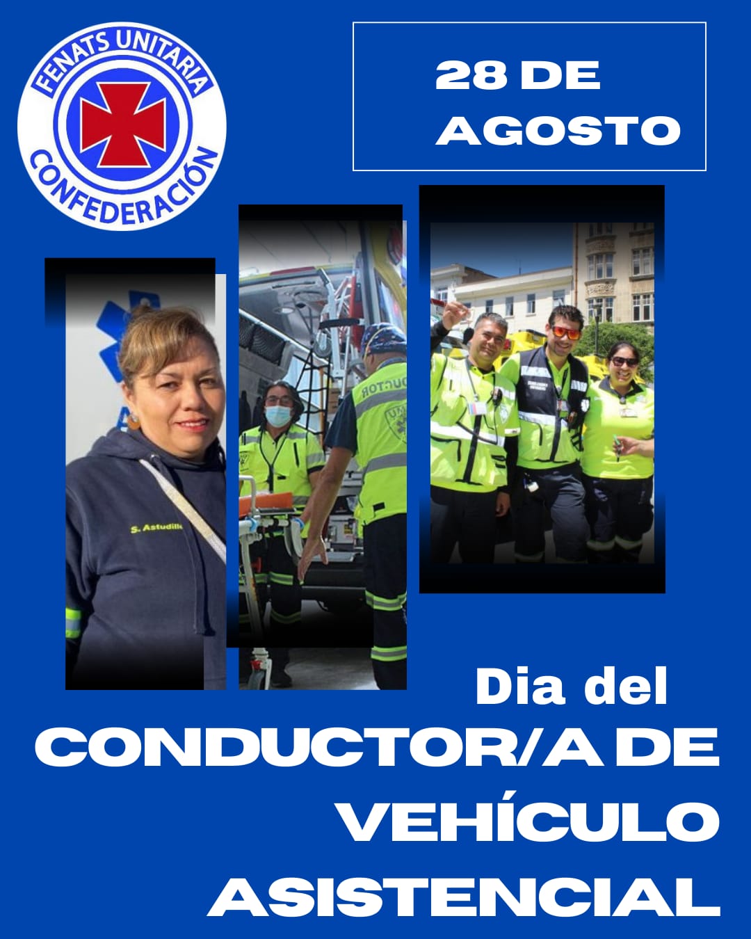 En la misma jornada, vaya el más fraterno saludo de parte de la Confederación FENATS Unitaria a los/as funcionarios/as administrativos/as que sostienen a los servicios fundamentales de la salud pública y del país en esta jornada y el vital rol de quienes mantienen la Salud Pública sobre ruedas: los Conductores/as de Vehículos Asistenciales.