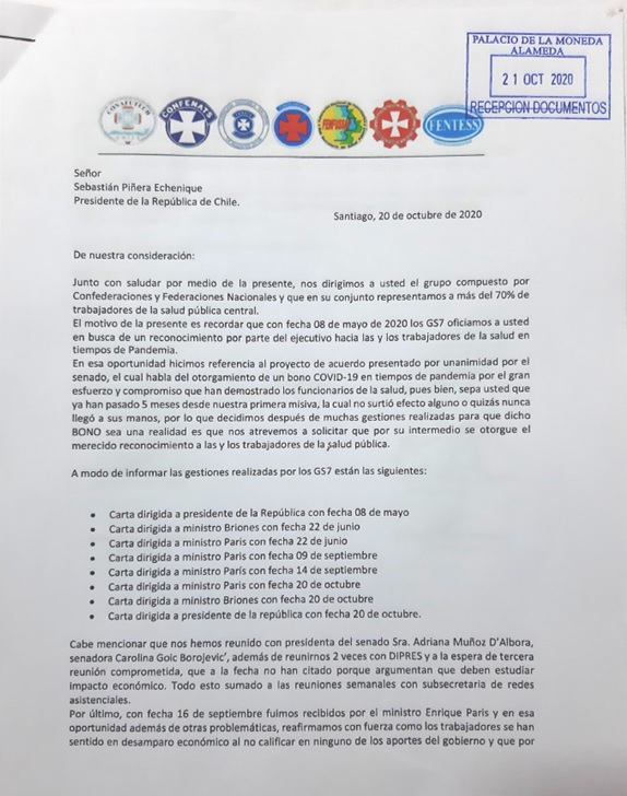 Estas cartas son para solicitar respuestas de parte de los Ministerios y el Presidente de la República, a los requerimientos de los Trabajadores y el reconocimiento que cada uno/a de ellos se merece.