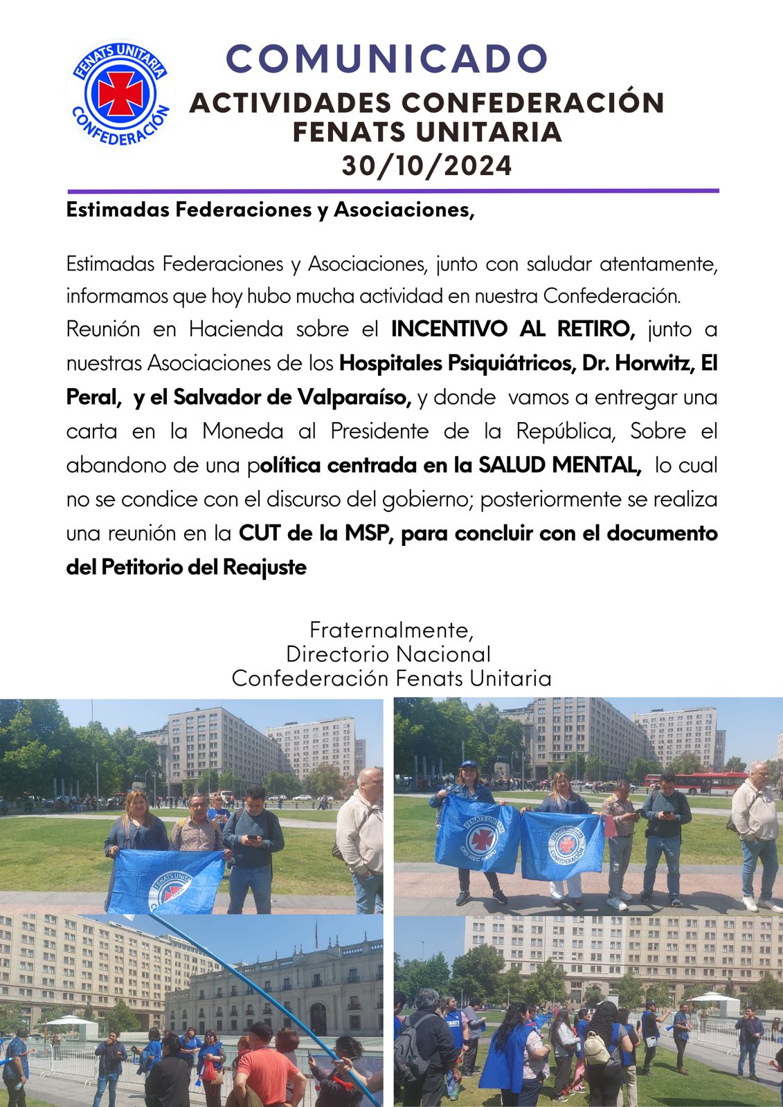 Representantes de Hospital El Peral refuerzan coordinación gremial en cia con la Confederación FENATS Unitaria