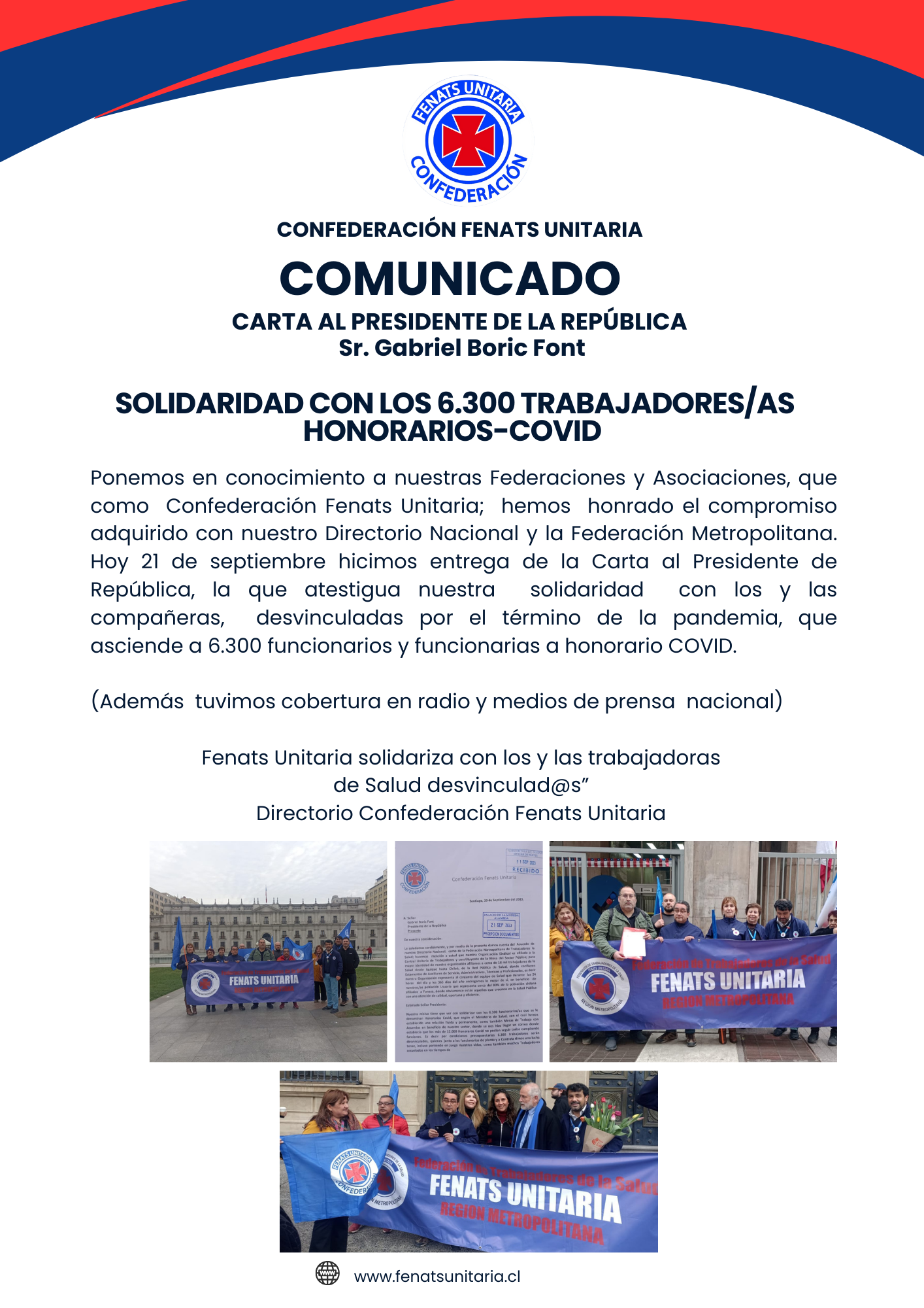 Confederación FENATS Unitaria adhiere a campaña “Respeta a quien te cuida”
