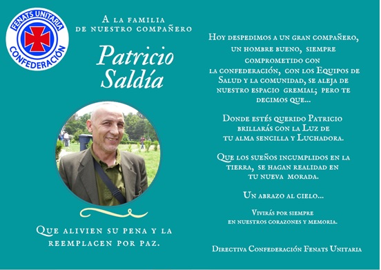 Condolencia Dirigente Patricio Saldia Gutierrez