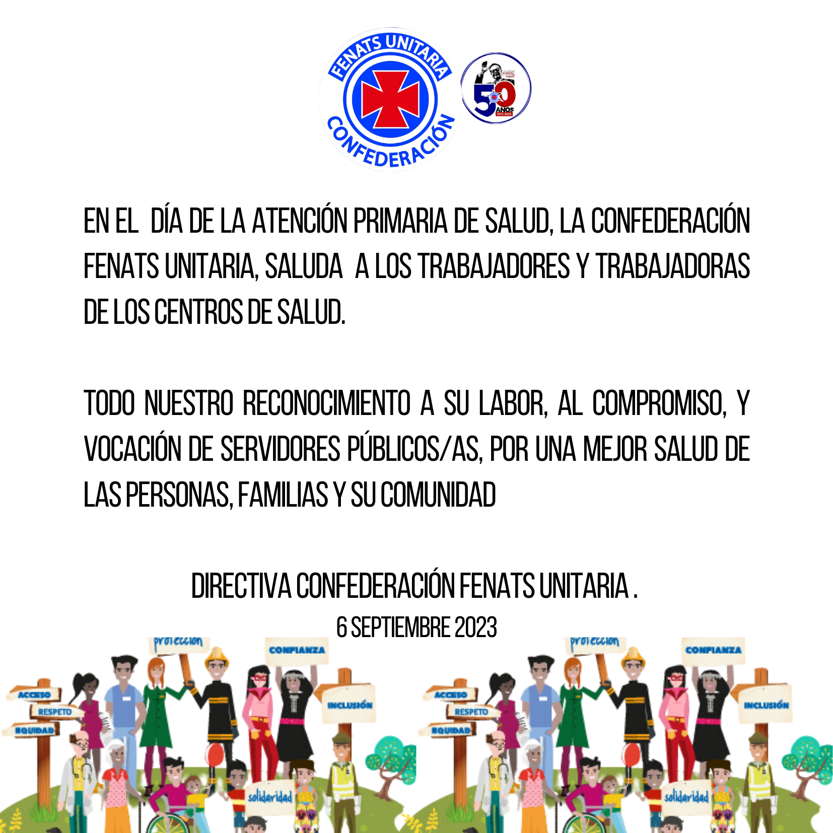 Confederación FENATS Unitaria adhiere a campaña “Respeta a quien te cuida”