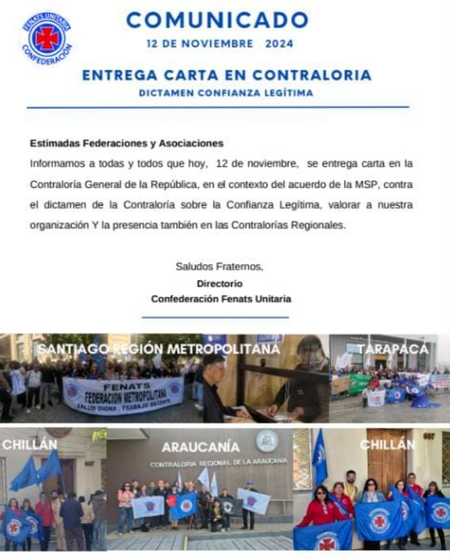 Representantes de Hospital El Peral refuerzan coordinación gremial en cia con la Confederación FENATS Unitaria