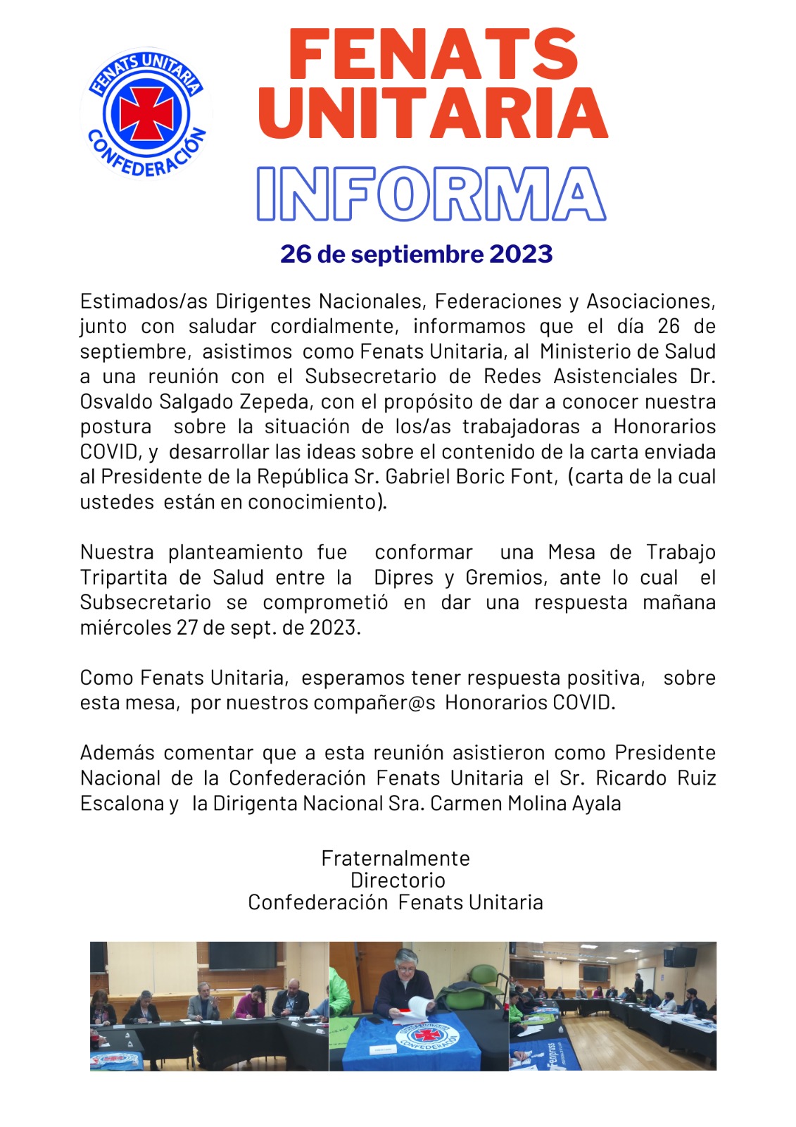 Representantes de Hospital El Peral refuerzan coordinación gremial en cia con la Confederación FENATS Unitaria