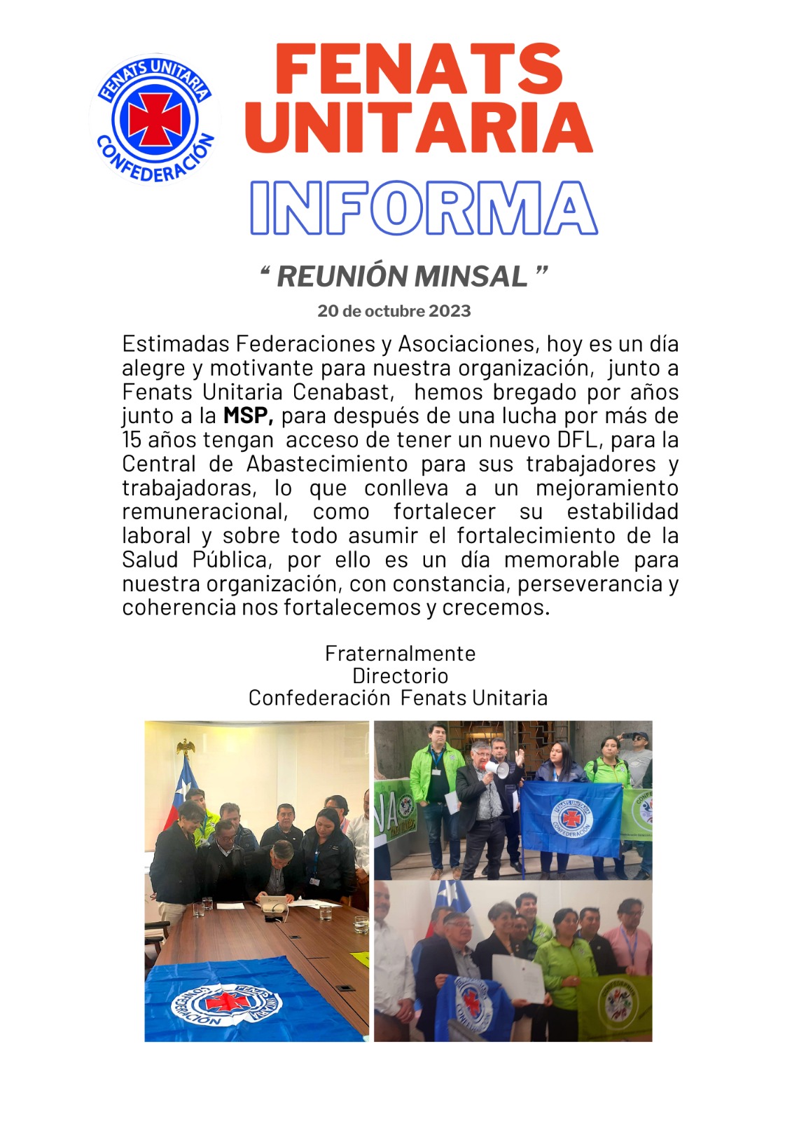 Representantes de Hospital El Peral refuerzan coordinación gremial en cia con la Confederación FENATS Unitaria