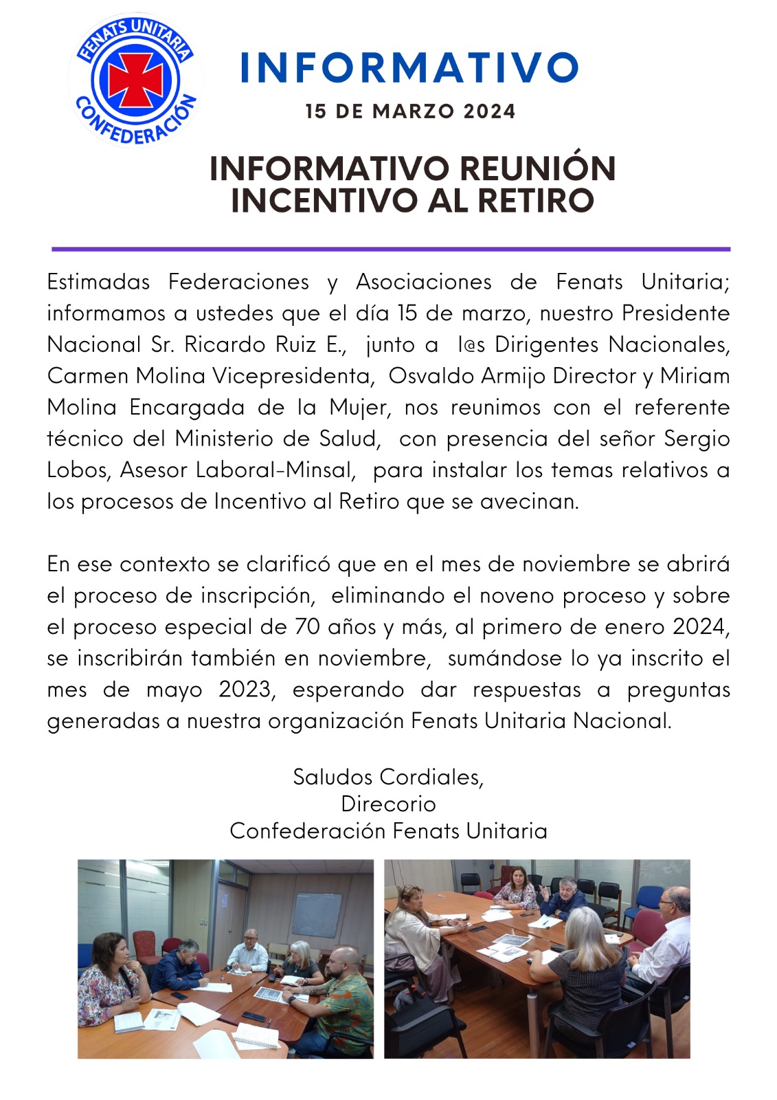 Confederación FENATS Unitaria realiza visita gremial al Instituto Nacional de Geriatría