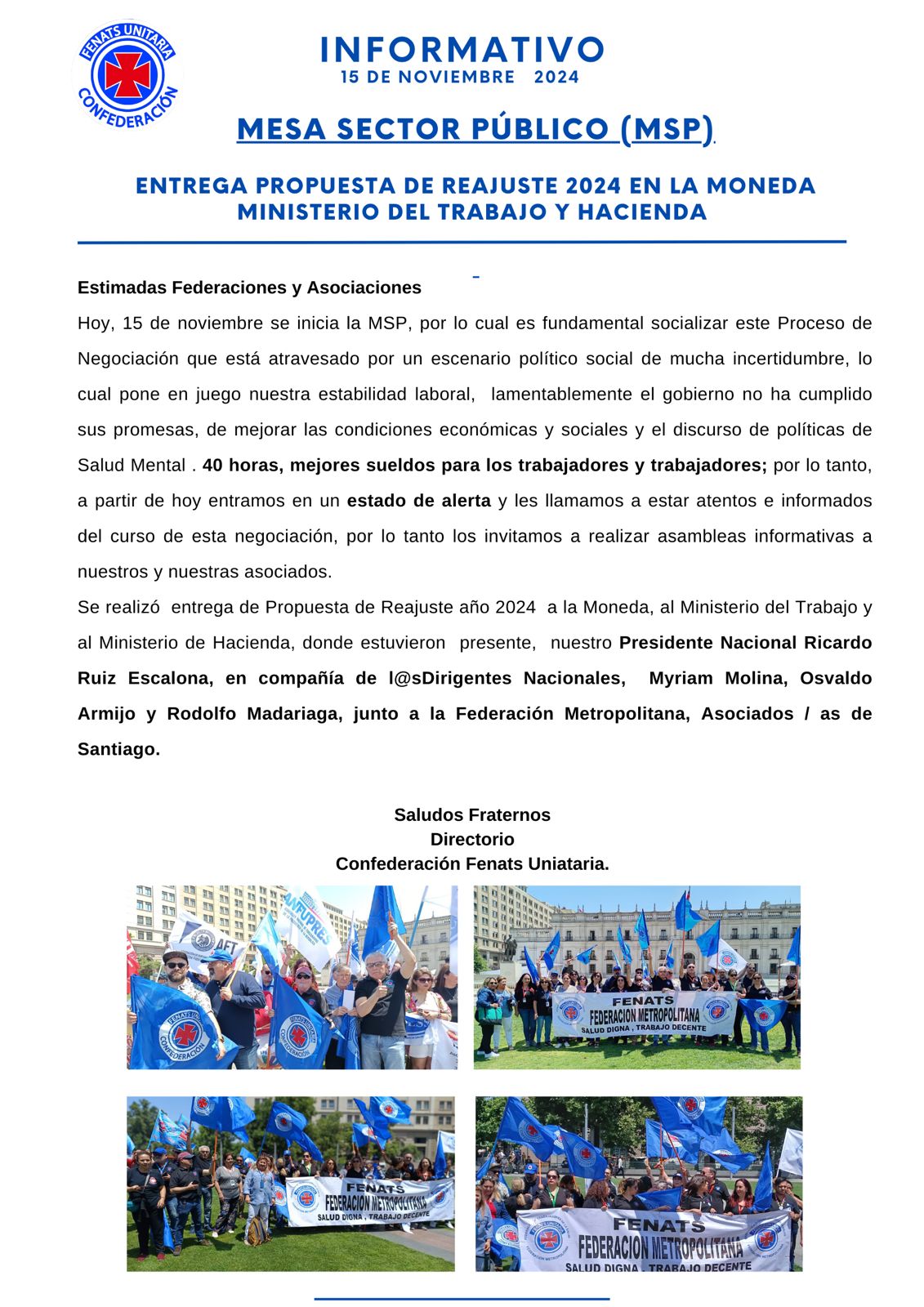 Confederación FENATS Unitaria adhiere a campaña “Respeta a quien te cuida”