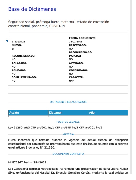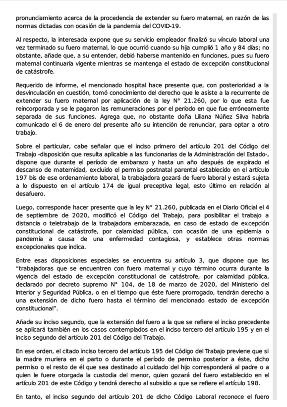 Junto con saludarles a cada uno/a de ustedes, nuestra Confederación Fenats Unitaria, les hace llegar Dictámen N° 201, que nos llega desde la Contraloría Gral. de la República, con fecha 28 de Enero de 2021, donde se establece “Prórroga de Fuero Maternal por Estado de Excepción Constitucional Pandemia Covid-19”.