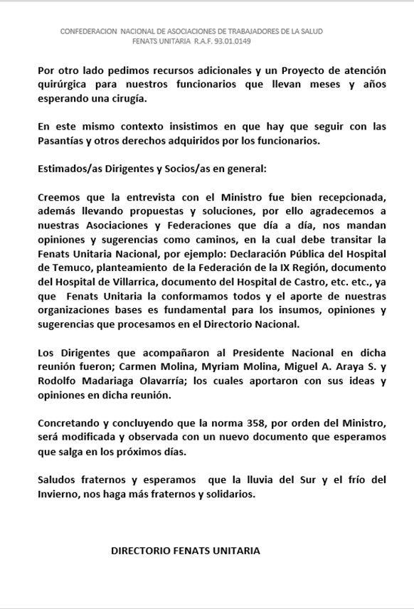 Representantes de Hospital El Peral refuerzan coordinación gremial en cia con la Confederación FENATS Unitaria