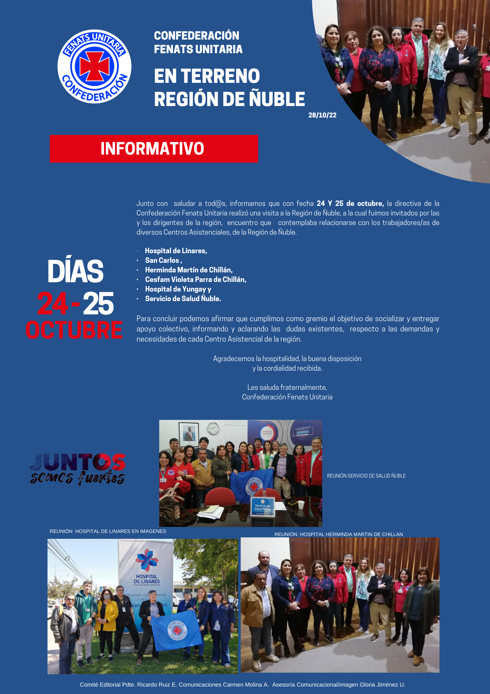 Representantes de Hospital El Peral refuerzan coordinación gremial en cia con la Confederación FENATS Unitaria